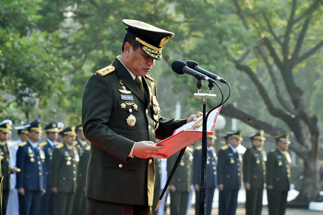 Demikian amanat tertulis Kepala Staf Umum (Kasum) TNI Laksdya TNI Dr. Didit Herdiawan, M.P.A., M.B.A., yang dibacakan oleh Komandan Komando Doktrin Pendidikan dan Latihan (Dankodiklat) TNI Mayjen TNI Benny Indra Pujihastono selaku Inspektur Upacara Peringatan Hari Ulang Tahun (HUT) Kemerdekaan Negara Kesatuan Republik Indonesia ke-73 Tahun 2018, bertempat di lapangan B-3 Mabes TNI, Cilangkap, Jakarta Timur, Jumat (17/8/2018).