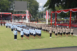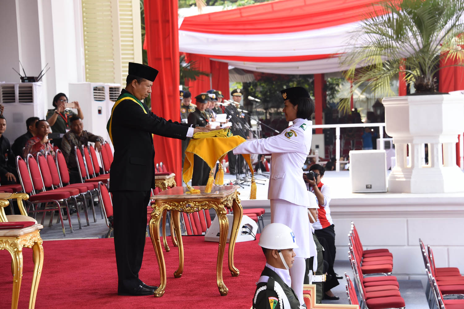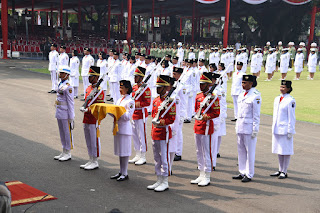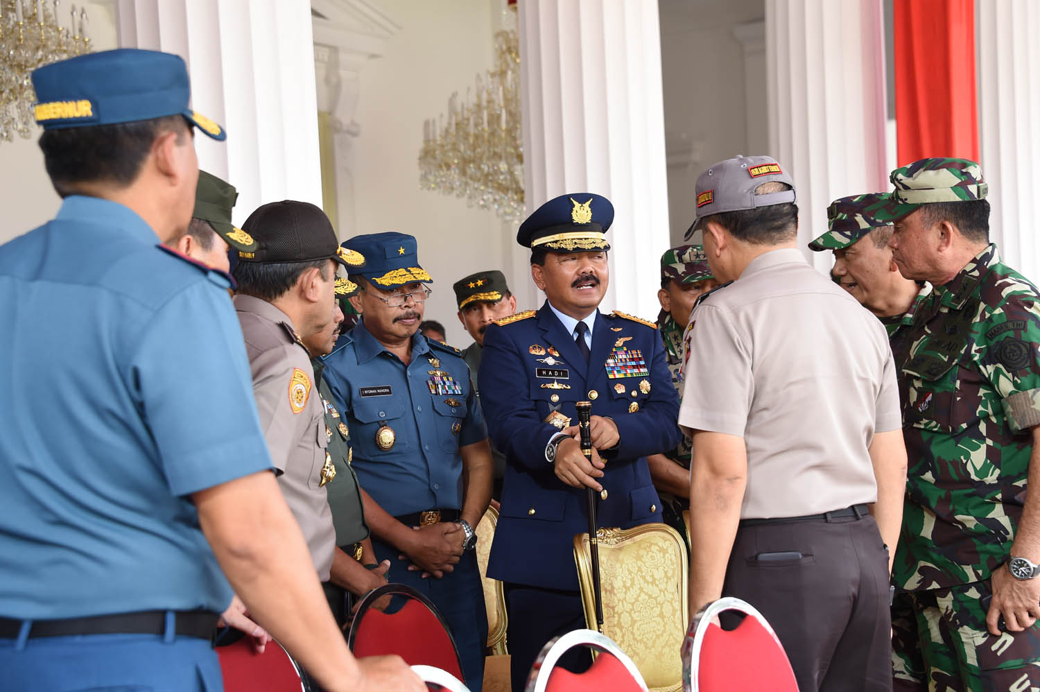Jakarta, Stratak-News | Panglima TNI Marsekal TNI Hadi Tjahjanto, S.I.P. didampingi Kasum TNI Laksdya TNI Dr. Didit Herdiawan, M.P.A., M.B.A., Danjen Akademi TNI Laksdya TNI Aan Kurnia, S.Sos, para Asisten Panglima TNI, Gubernur Akademi TNI dan Kapuspen TNI Mayjen TNI M. Sabrar Fadhilah serta jajaran Polri meninjau Upacara Gladi Bersih HUT RI ke-73 di Istana Negara, Jakarta Pusat, Rabu (15/8/2018).
