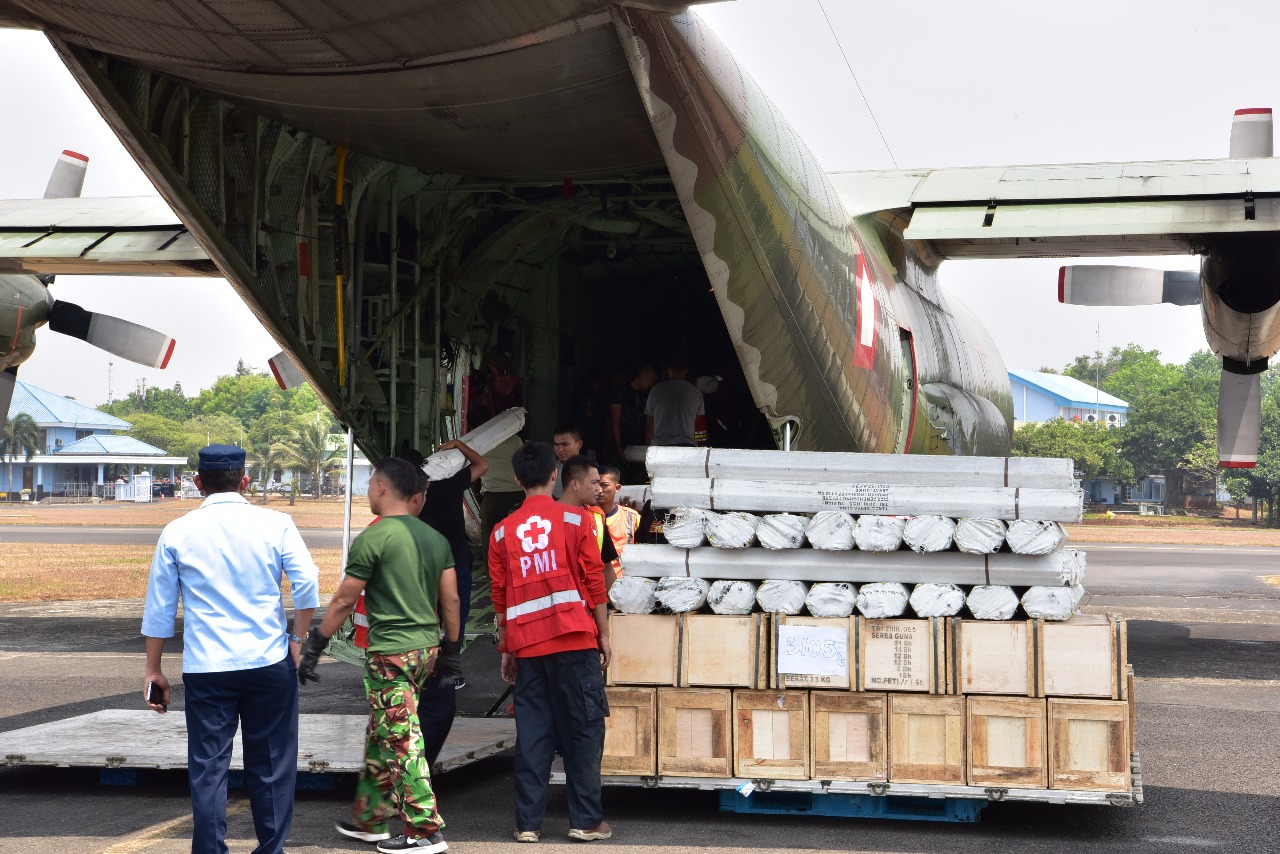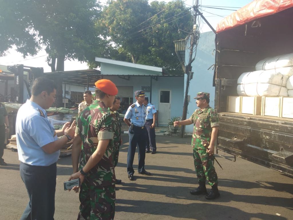 Jakarta, Stratak-News | Panglima TNI Marsekal TNI Hadi Tjahjanto, S.I.P. didampingi Komandan Lanud Halim Perdanakusuma Marsma TNI Mohamad Tonny Harjono meninjau langsung pengiriman bantuan dari Tentara Nasional Indonesia untuk korban gempa bumi Lombok, Nusa Tenggara Barat, bertempat di Gedung Suma 3, VIP Room Lanud Halim Perdana Kusuma, Jakarta Timur, Senin (20/8/2018).   Bantuan sebanyak 9,8 ton dari TNI, terdiri dari 55 tenda lapangan dan obat-obatan diangkut menggunakan Pesawat Hercules C-130 A-1312 dibawah pimpinan Pilot Mayor Pnb Fandi Abdilah dan Co Pilot Lettu Pnb Gustin Rossyan.