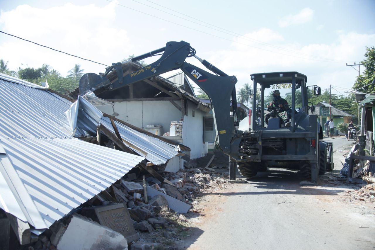 Sebanyak 1 Satuan Setingkat Kompi (SSK) berkekuatan 100 personel beserta 5 (lima) alat berat dan 5 (lima) Dump Truk. Kegiatan ini terbagi di beberapa titik diantaranya Kec. Pemenang, Bayan dan Kayangan. Khusus di Kayangan di bawah pimpinan Lettu Czi Nurul telah berhasil membersihkan 45 reruntuhan rumah. Puing-puing tersebut ditumpuk pada lahan kosong yang terdapat di dekat kantor Kecamatan Kayangan.
